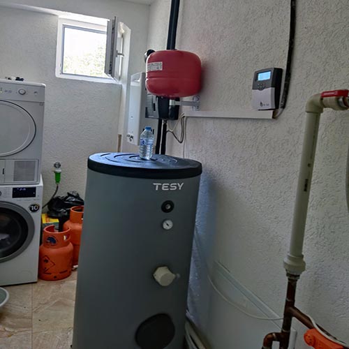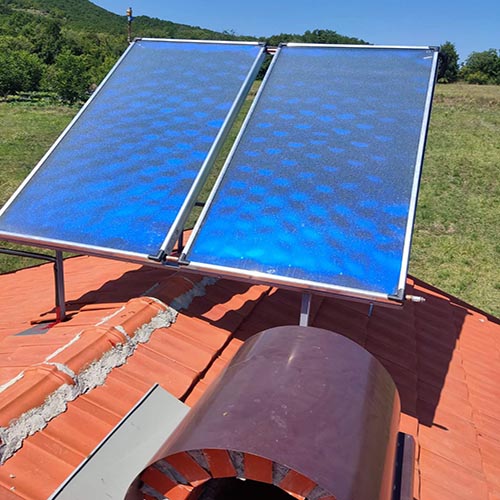 со панелни колектори, вакумски колектори од типот KAMEL и грчки колектори, високотемпературен колектор со затворен систем со бољери (100l, 200l, 300l, 500l). Гаранција на изведеното и сервисирање.